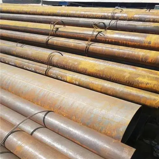 烟台gb3087无缝钢管要用钢锭或实芯管料经破孔制成毛管,随后经热扎、冷轧或冷拨制成。烟台gb3087无缝钢管在中国钢管业中具备重要的位置。据不完全统计,我国目前无缝管生产公司约240多家,无缝管机组约250多套,年产能力约450多万吨。从规格看,烟台gb3087无缝钢管的原料是圆管坯,圆管胚要经过切割机的切割制作成长短约为1米胚料,并经输送带送至溶炉内加温。钢坯被送进溶炉内加温,温度约为1200℃。燃料为氢气或乙炔。炉内温控是关键性的难题.圆管坯出炉后要经过压力穿孔机开展穿空。一般较常见的穿孔机是锥形辊穿孔机,这类穿孔机生产效率高,产品品质好,破孔扩径量多,可穿多种钢种。破孔后,圆管坯就先后被三辊斜轧、连轧或挤压。挤压后应脱管定径。定径机根据锥形钻头高速运转入钢胚打孔,产生钢管。钢管内径由定径机钻头的直径长短来决定。钢管经定径后,进入冷却塔中,根据喷水冷却,钢管经冷后,就要被校直。钢管经校直后由输送带送往金属探伤机(或压力试验)进行内部探伤。若钢管内部有裂痕,气泡等问题,将被检测出。钢管质检后还要通过严格手工选择。钢管质检后,用漆料喷上编号、规格、生产日期等。并由吊车吊入仓库里。